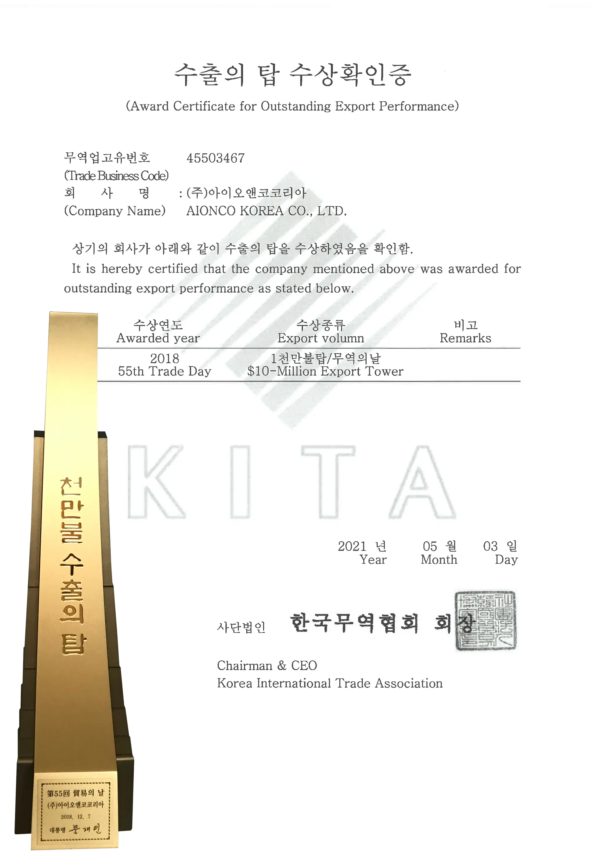 2018 1,000万ドルの輸出で貿易協会最高賞の大統領賞を受賞